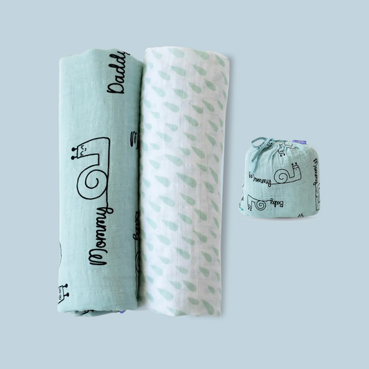 Set of 2 Cotton Muslin Baby Swaddle Blanket — Friendly Snail Sam